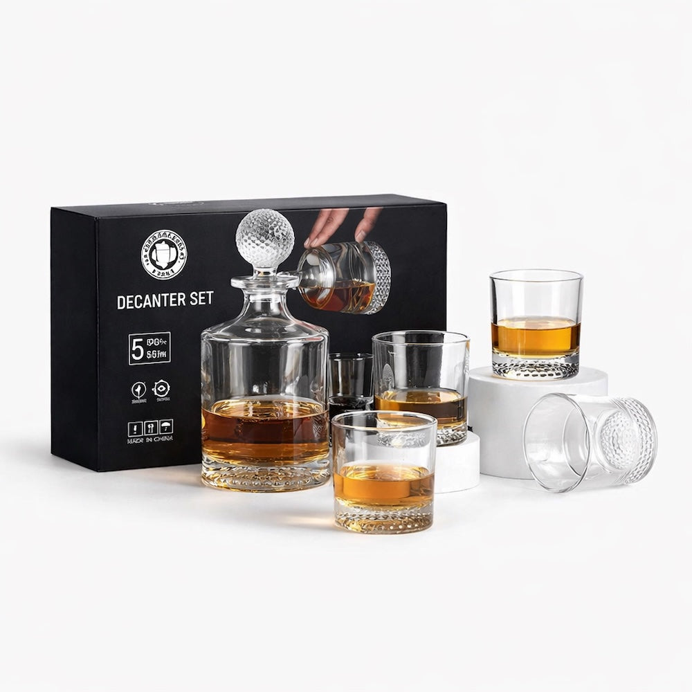 Customizable Golf Glass Decanter Set with Four Golf Rock Glasses